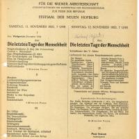 [Karl Kraus las im Festsaal der neuen Hofburg.] Für die Wiener Arbeiterschaft. Zur Feier der Republik. 12. November, 7 Uhr:
