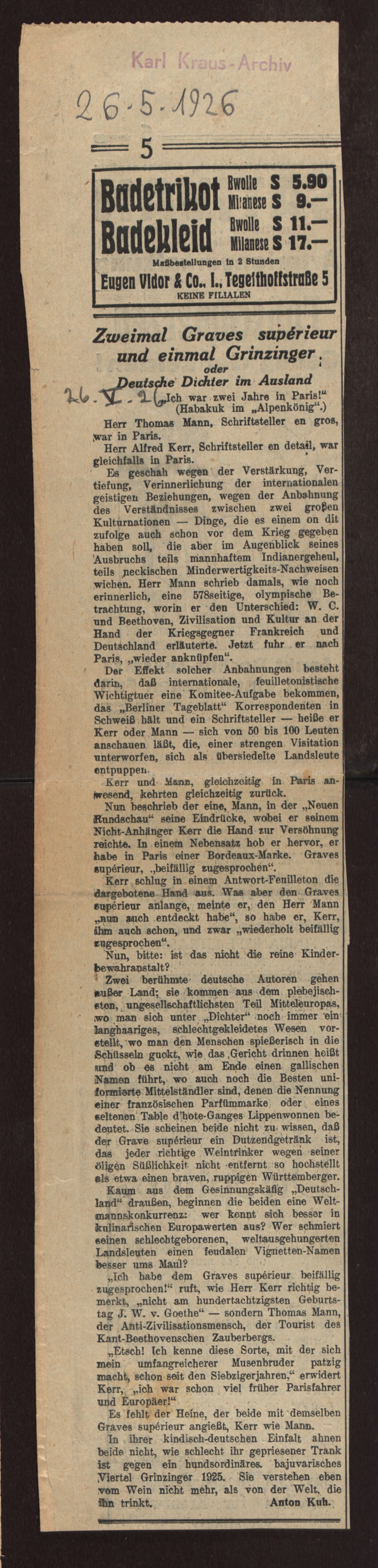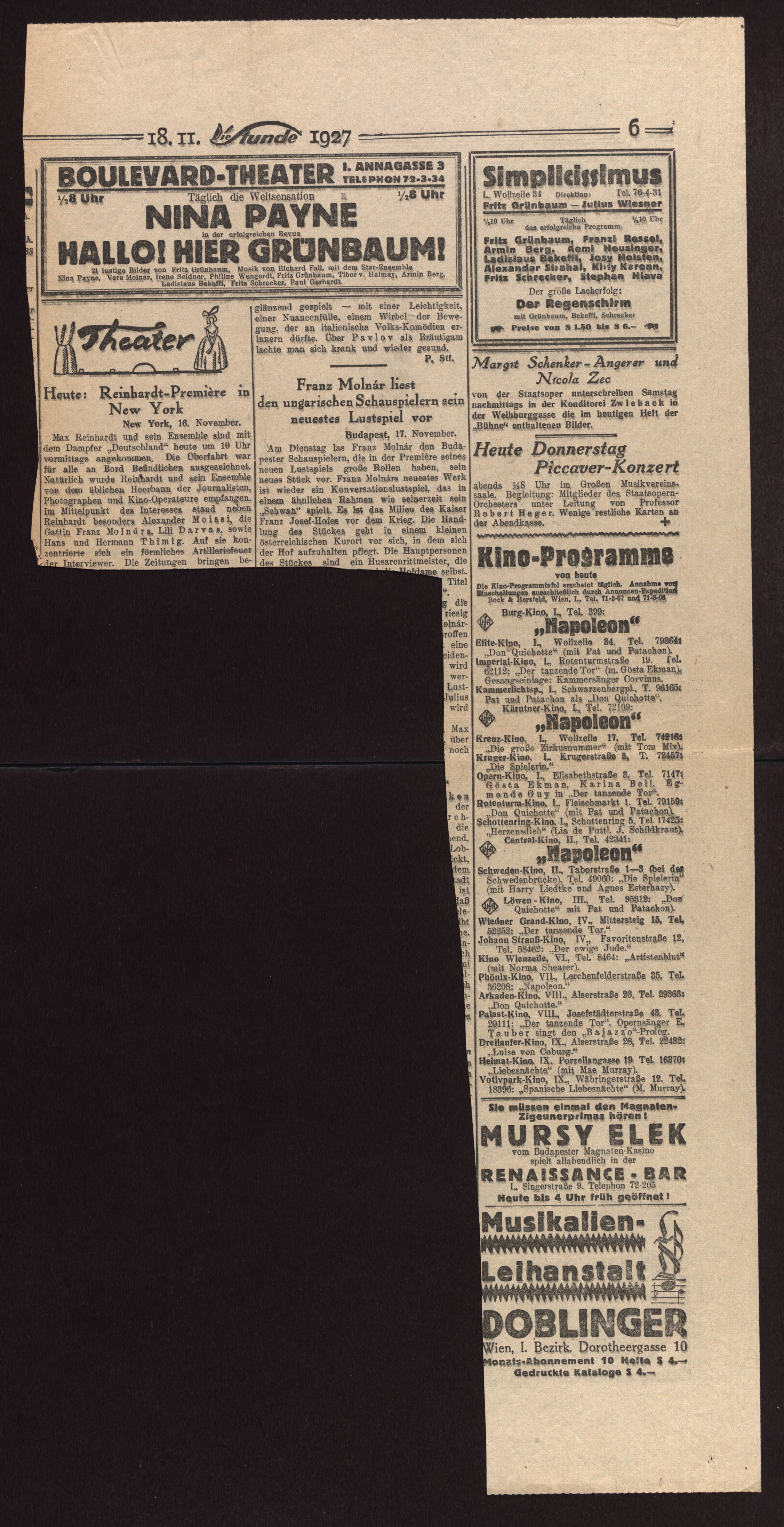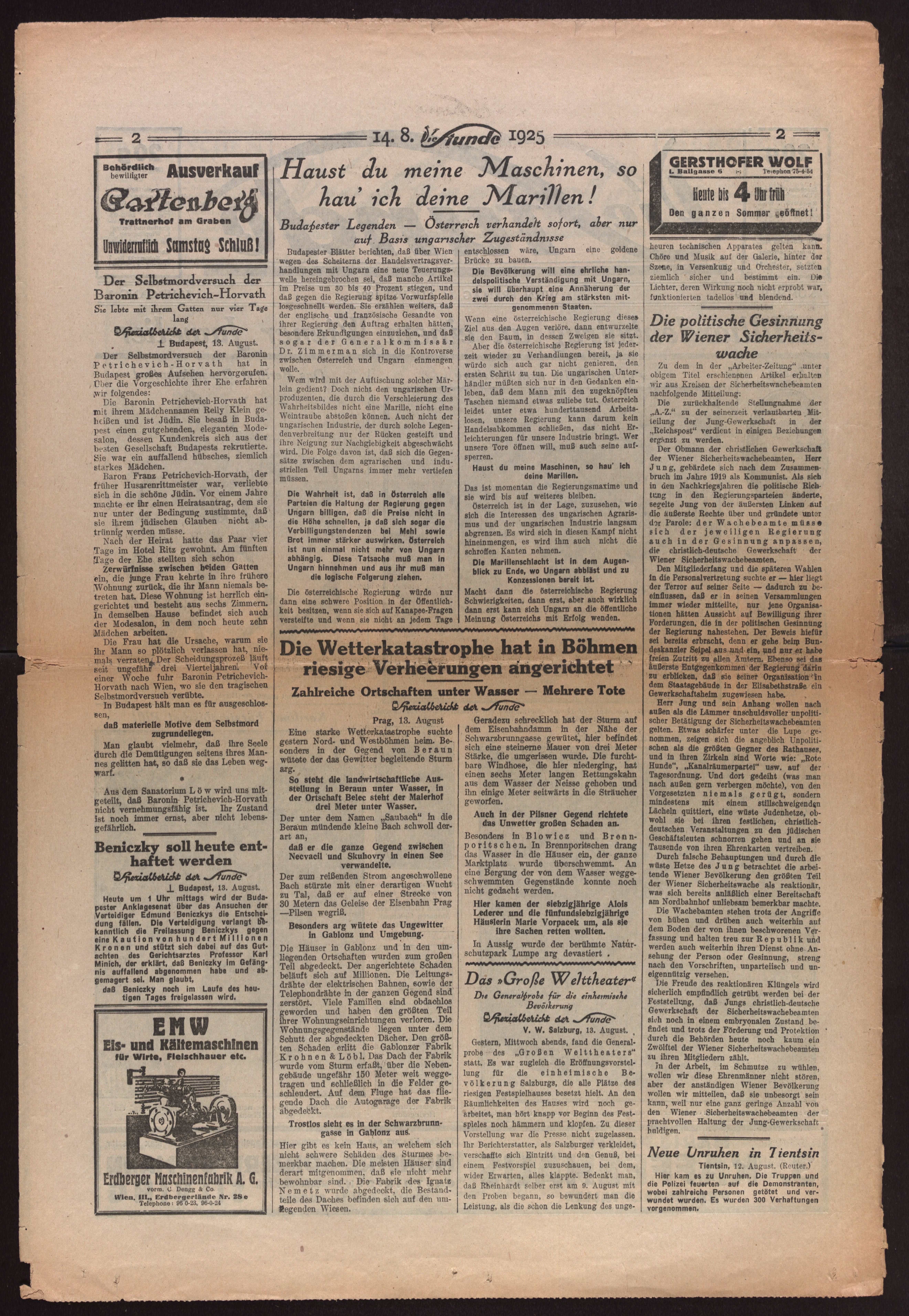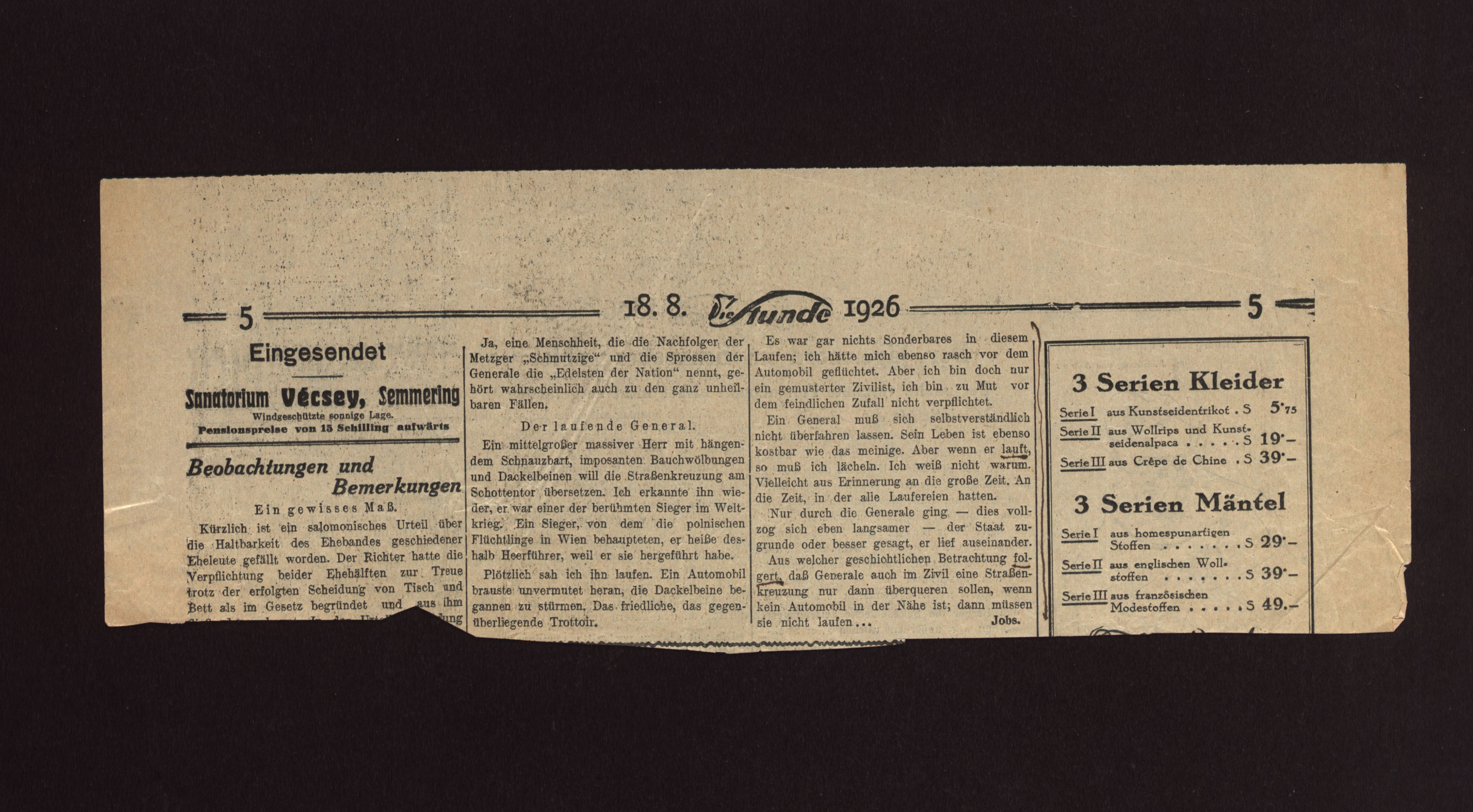 Signatur: ZPH 1545 - 214.9.Hauptnummer: 214Nebennummer: 9Datum: 08.07.1923 – 18.11.1927 >> Konvolut diverse Zeitungen und Zeitschriften/Zeitungsausschnitte/Kopien von Zeitungsartikeln