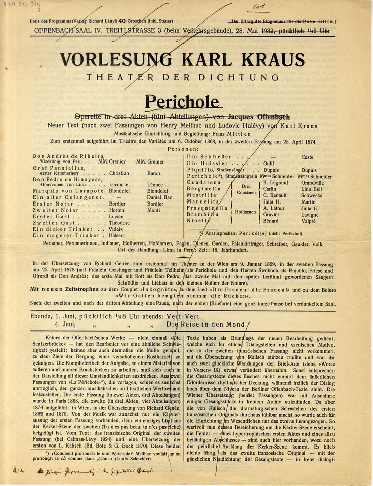 Neuer Text (nach zwei Fassungen von Henry Meilhac und Ludovic Halévy) von Karl Kraus