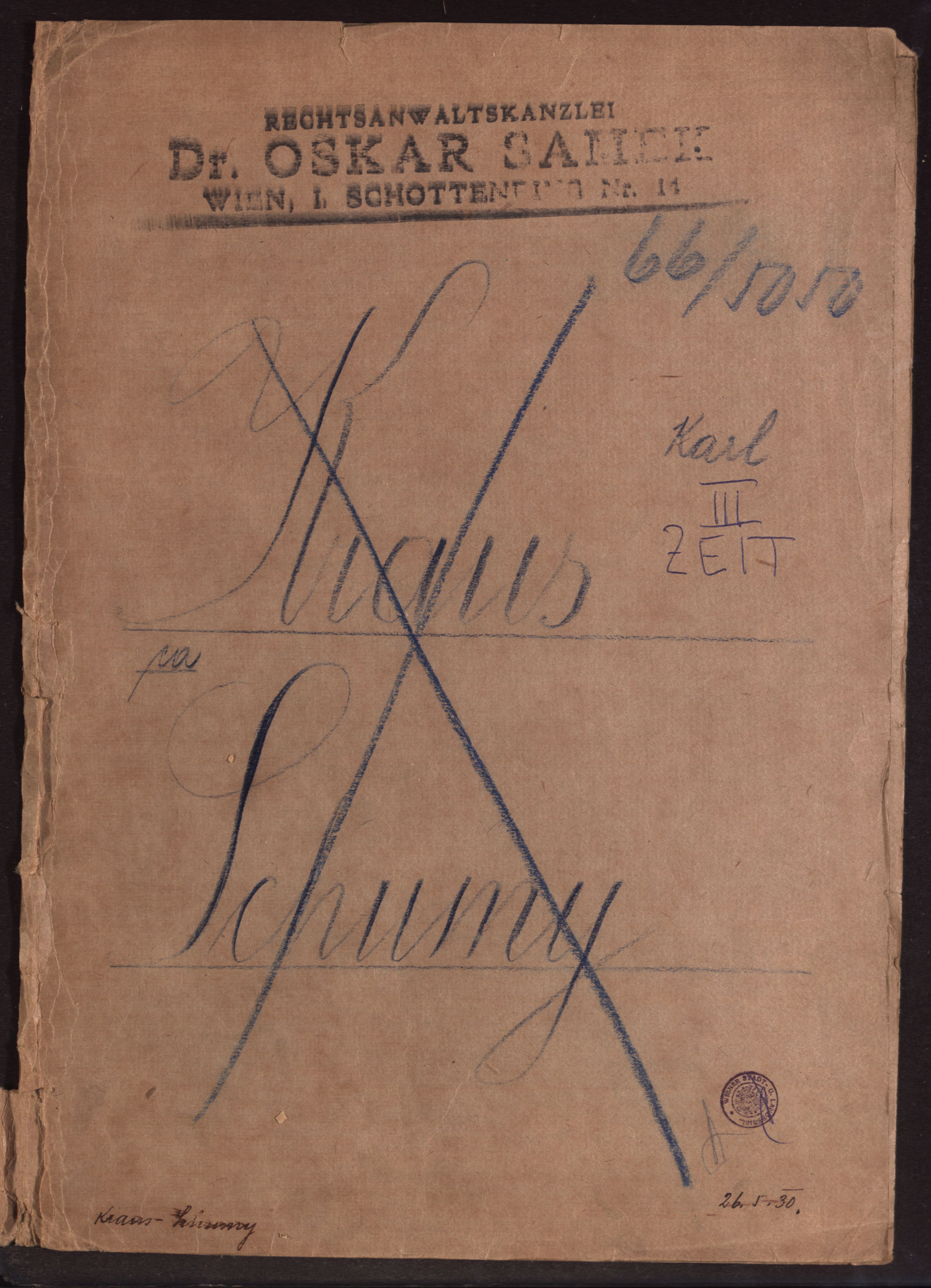 Signatur: ZPH 1545 - 213.1.Hauptnummer: 213Nebennummer: 1Datum: 24.05.1930 – 25.05.1930 >> Kraus ca. Schumy