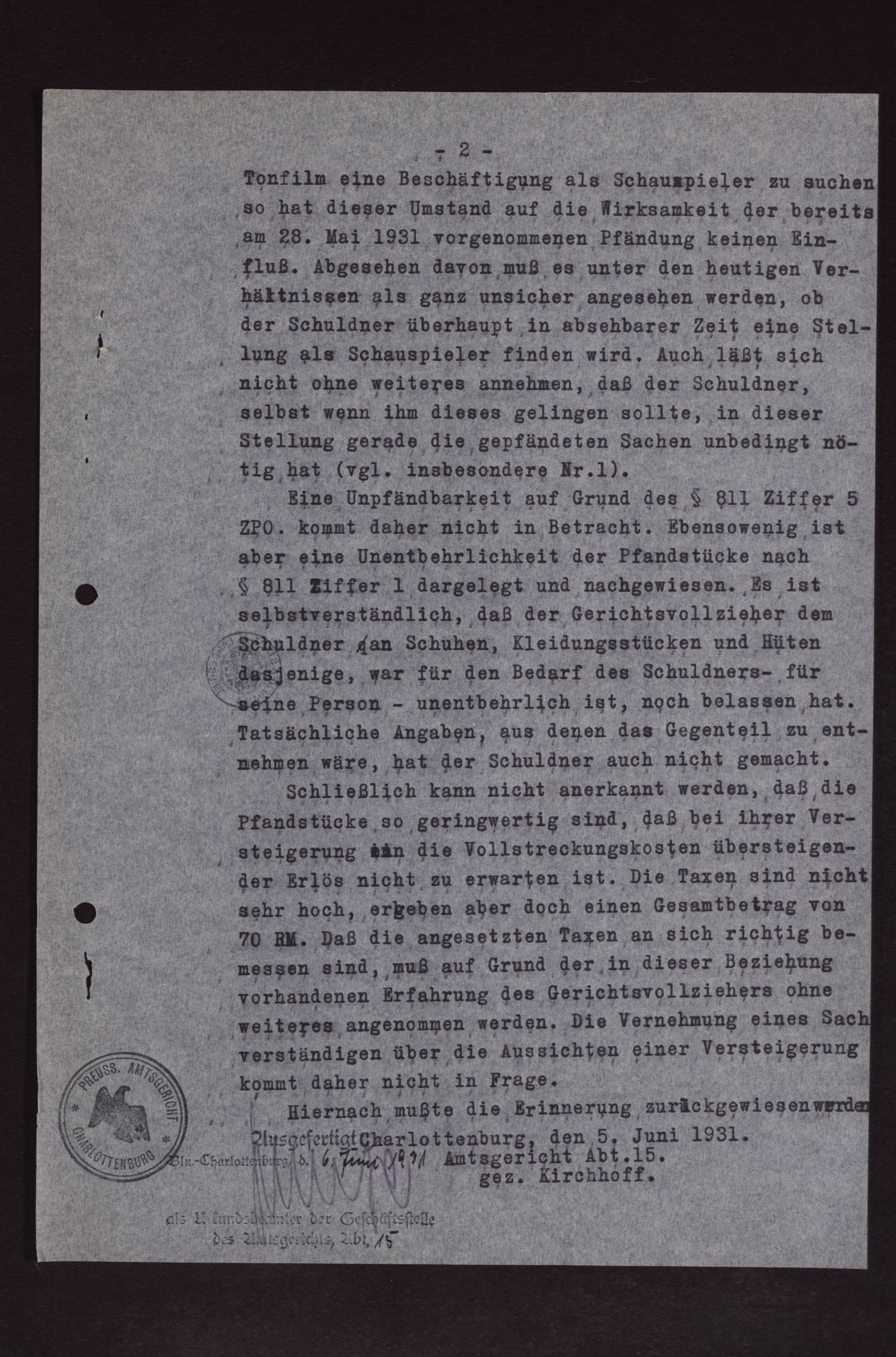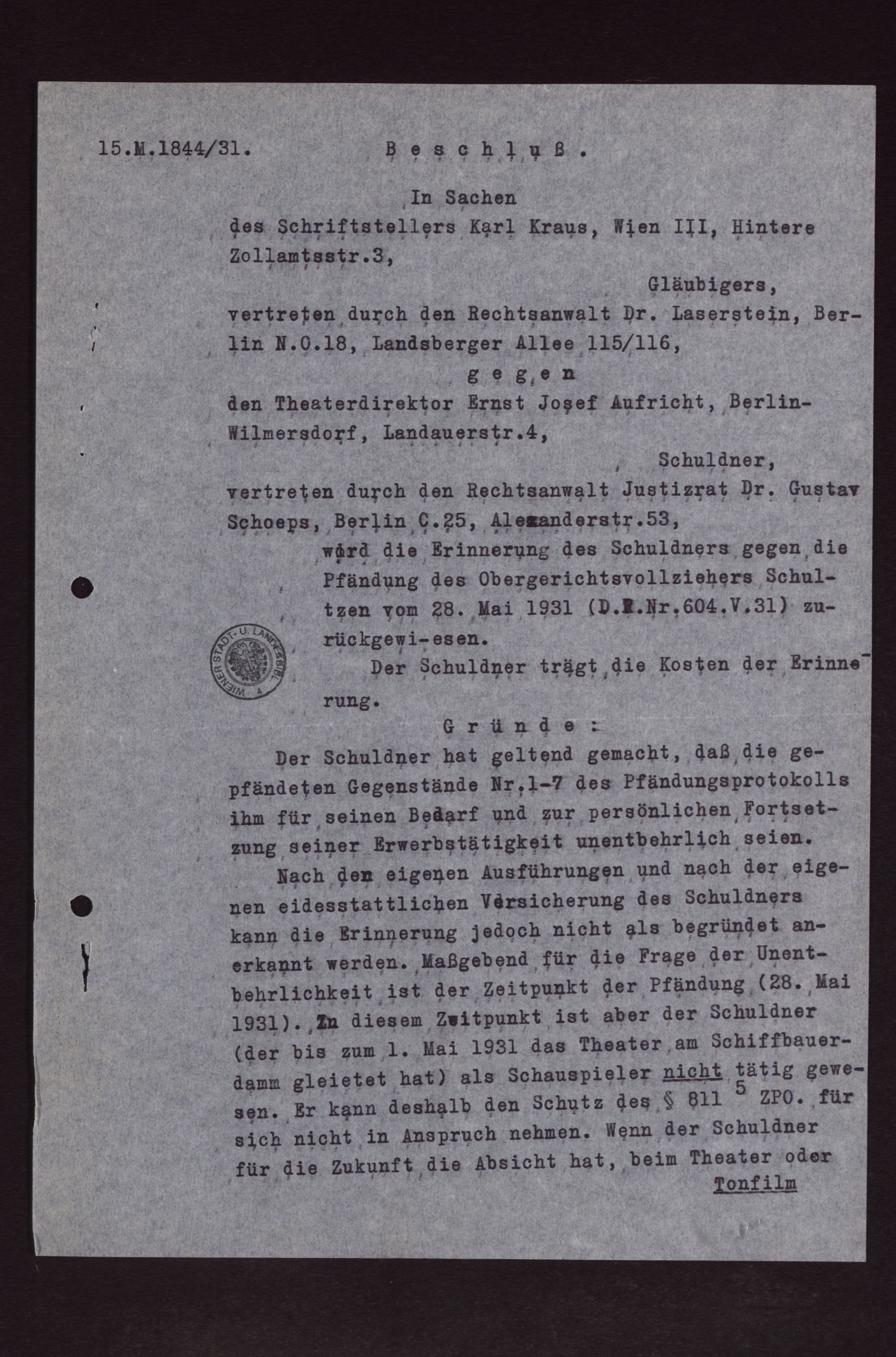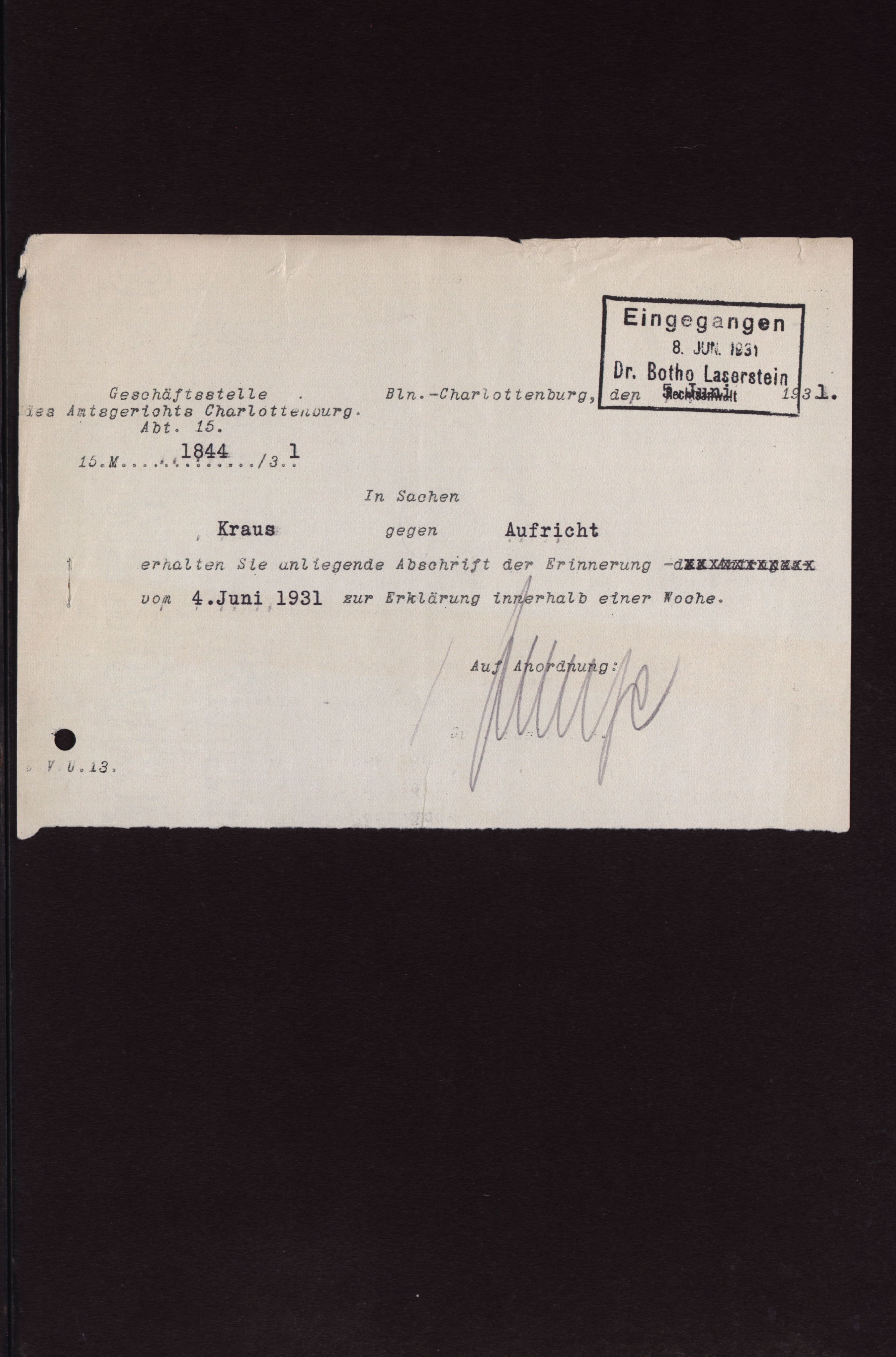 Signatur: ZPH 1545 - 146.47.Anzahl der Seiten: 2Hauptnummer: 146Nebennummer: 47Datum: 05.06.1931 >> Karl Kraus ca. Ernst Josef Aufricht