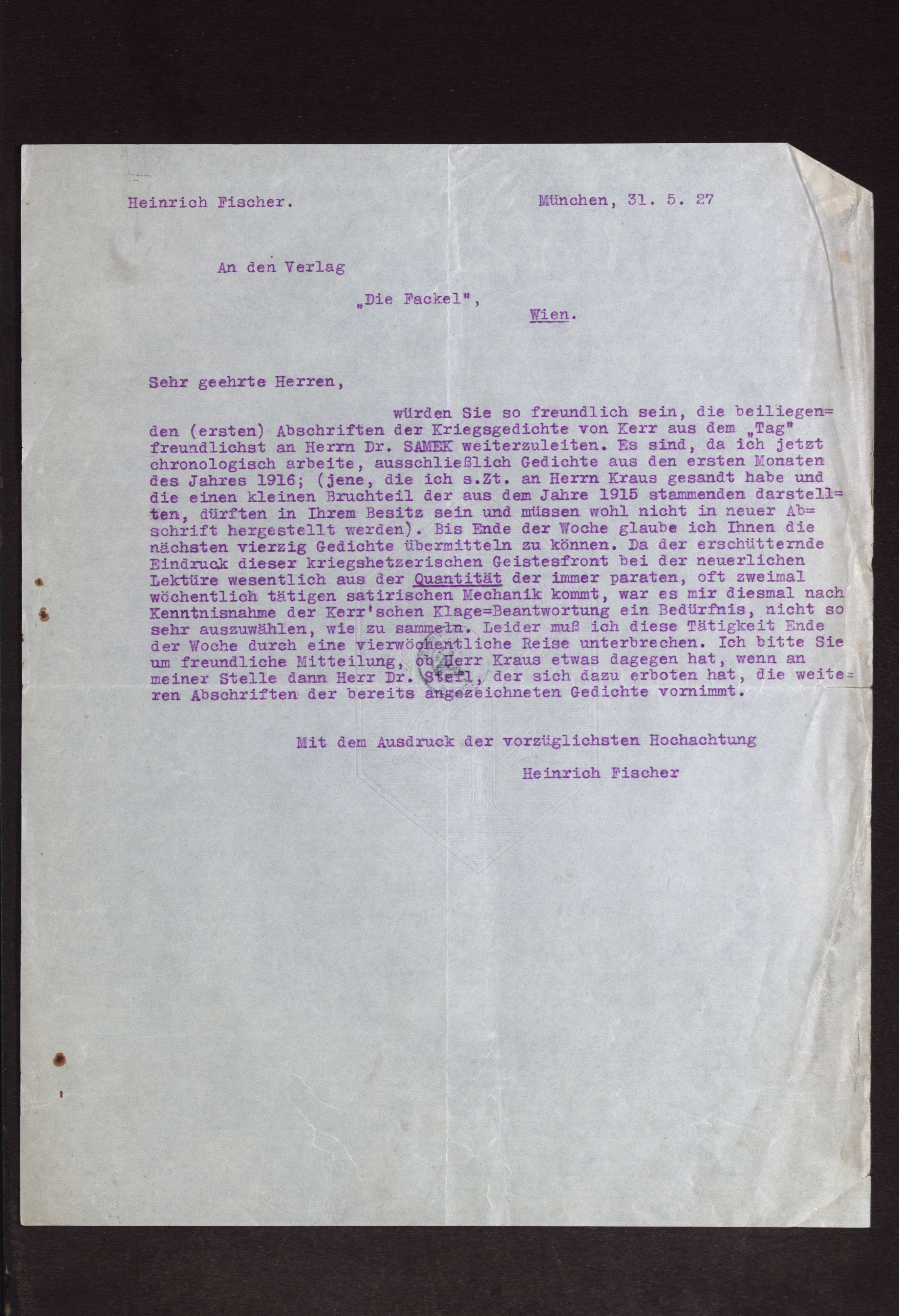 Signatur: ZPH 1545 - 68.22.Anzahl der Seiten: 1Hauptnummer: 68Nebennummer: 22Datum: 31.05.1927 >> Karl Kraus ca. Alfred Kerr