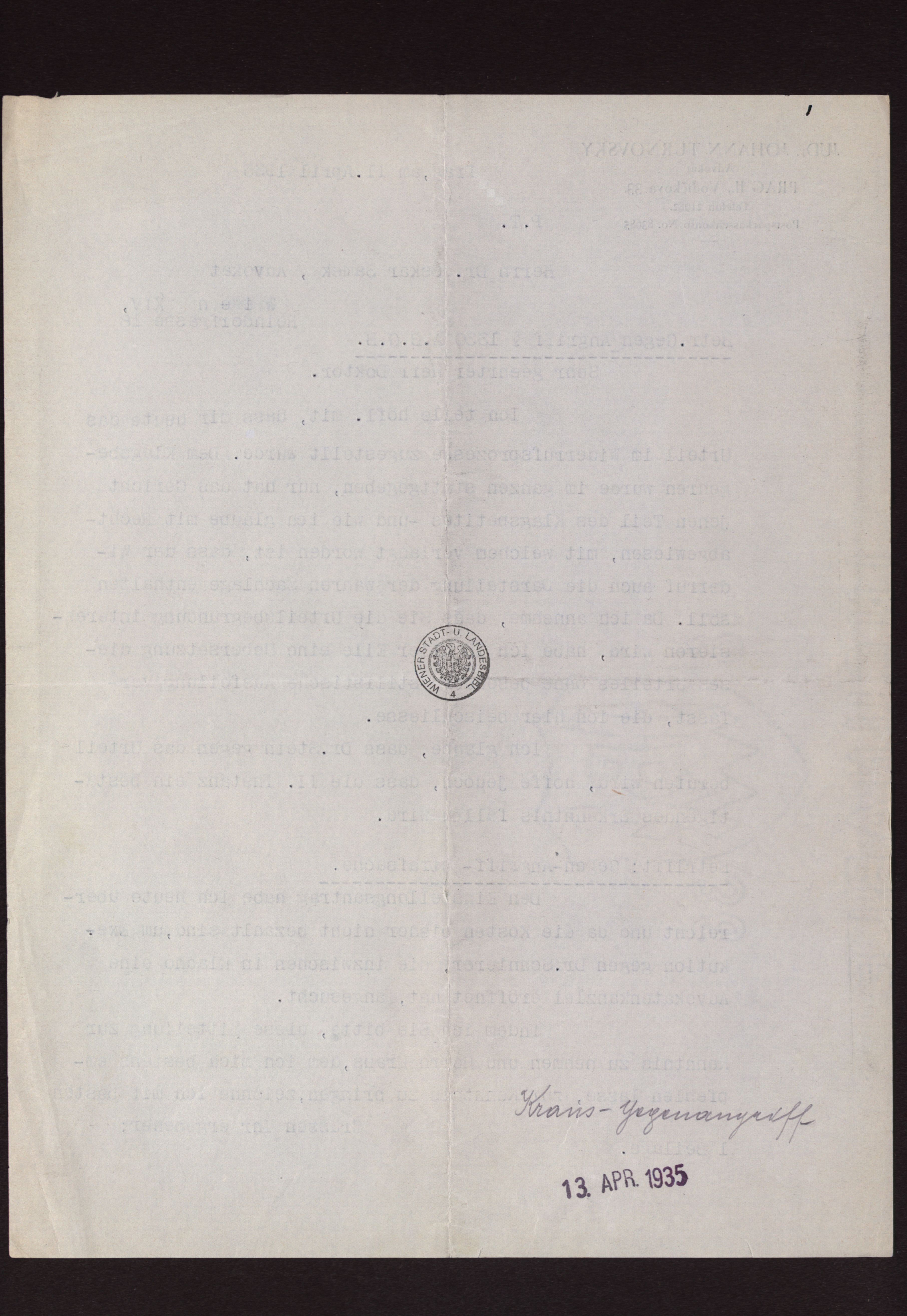 Signatur: ZPH 1545 - 189.109.Anzahl der Seiten: 1Hauptnummer: 189Nebennummer: 109Datum: 11.04.1935 >> Karl Kraus ca. Gegen-Angriff