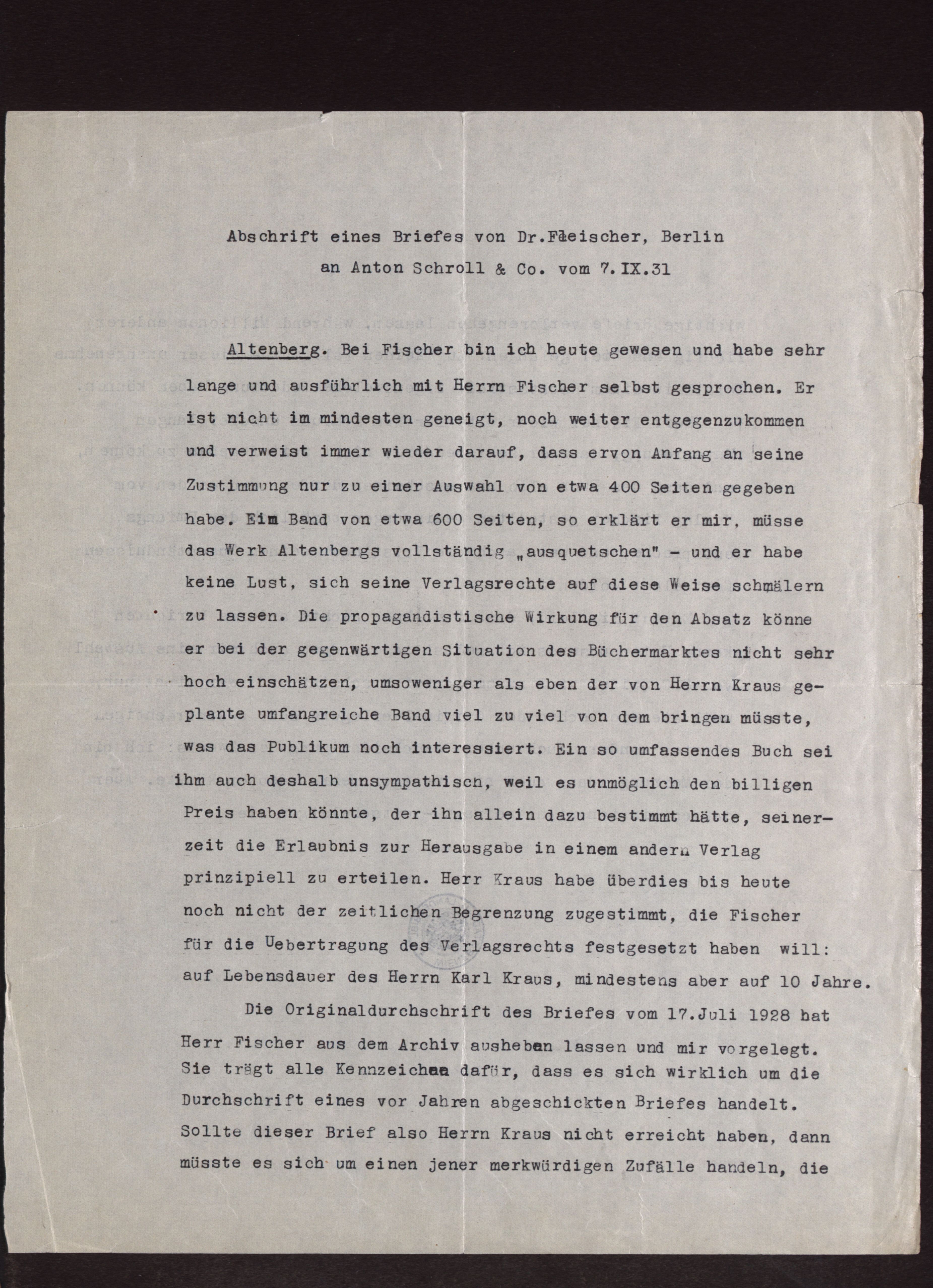 Signatur: ZPH 1545 - 144.49.Anzahl der Seiten: 1Hauptnummer: 144Nebennummer: 49Datum: 07.09.1931 >> Karl Kraus ca. S. Fischer Verlag (Berlin)
