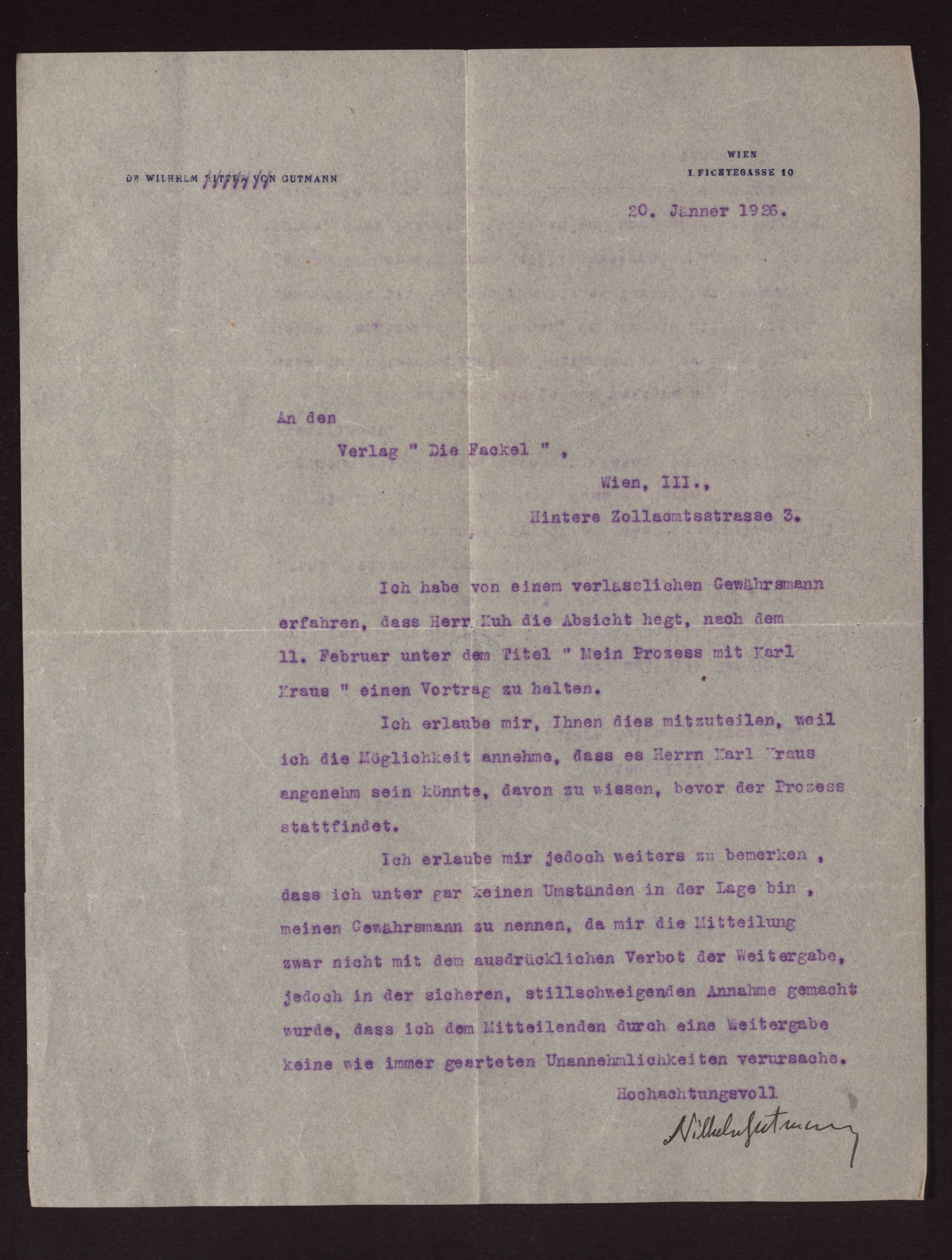 Signatur: ZPH 1545 - 206.1.Anzahl der Seiten: 1Hauptnummer: 206Nebennummer: 1Datum: 20.01.1926 >> Die Fackel – Diverses