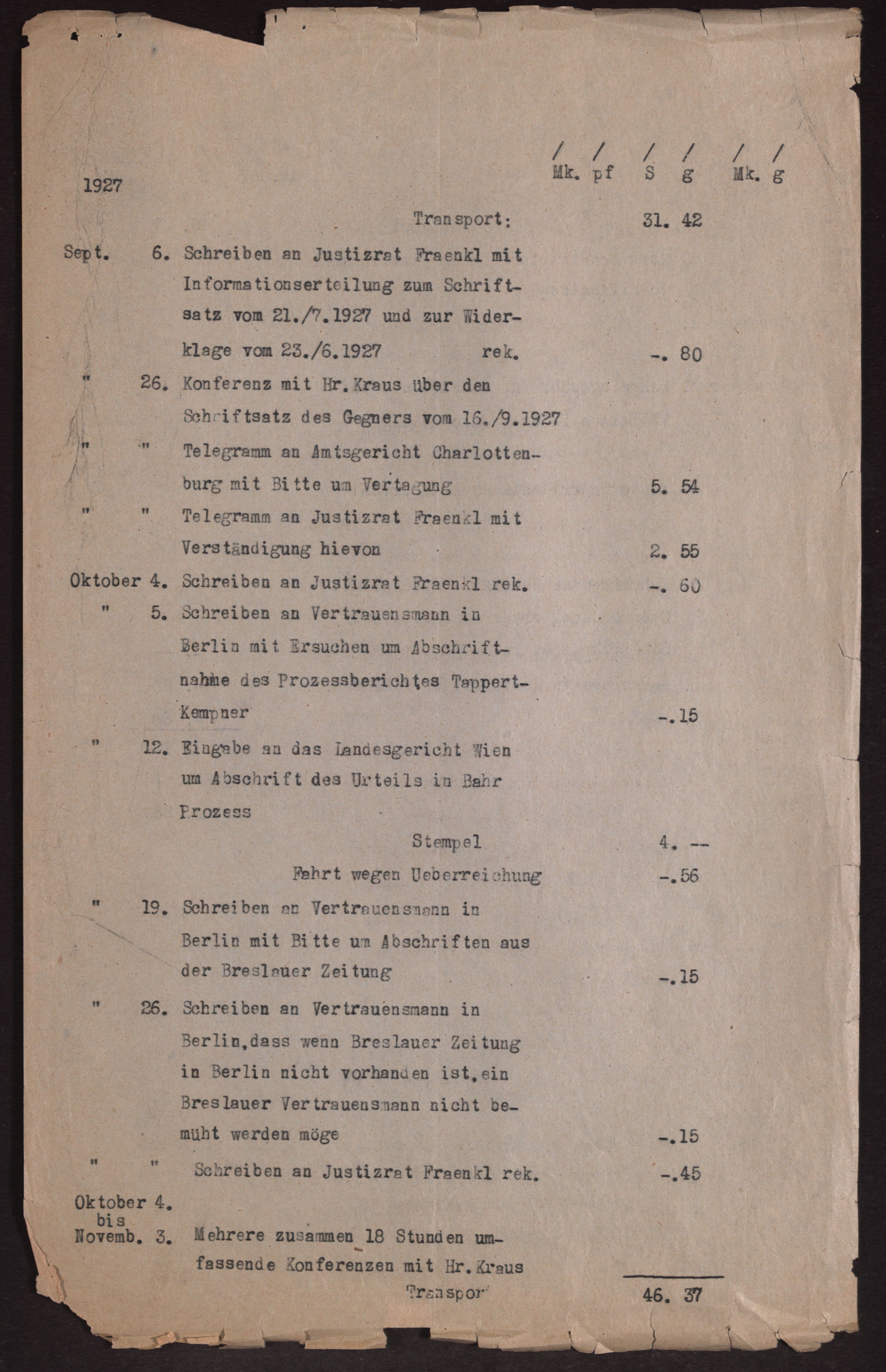 Signatur: ZPH 1545 - 205.1.Anzahl der Seiten: 4Hauptnummer: 205Nebennummer: 1Datum: 24.05.1928 >> Verrechnung Kraus