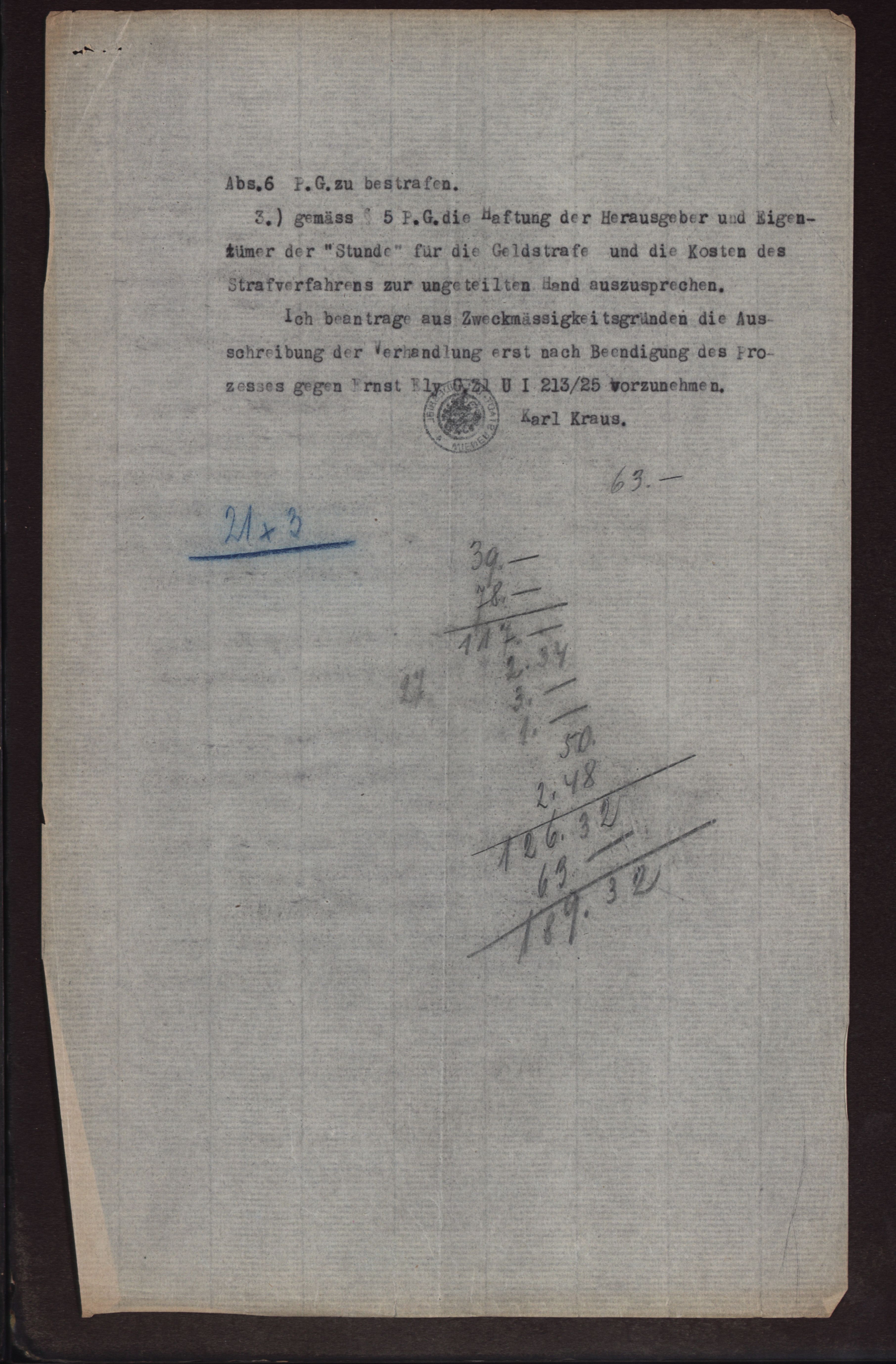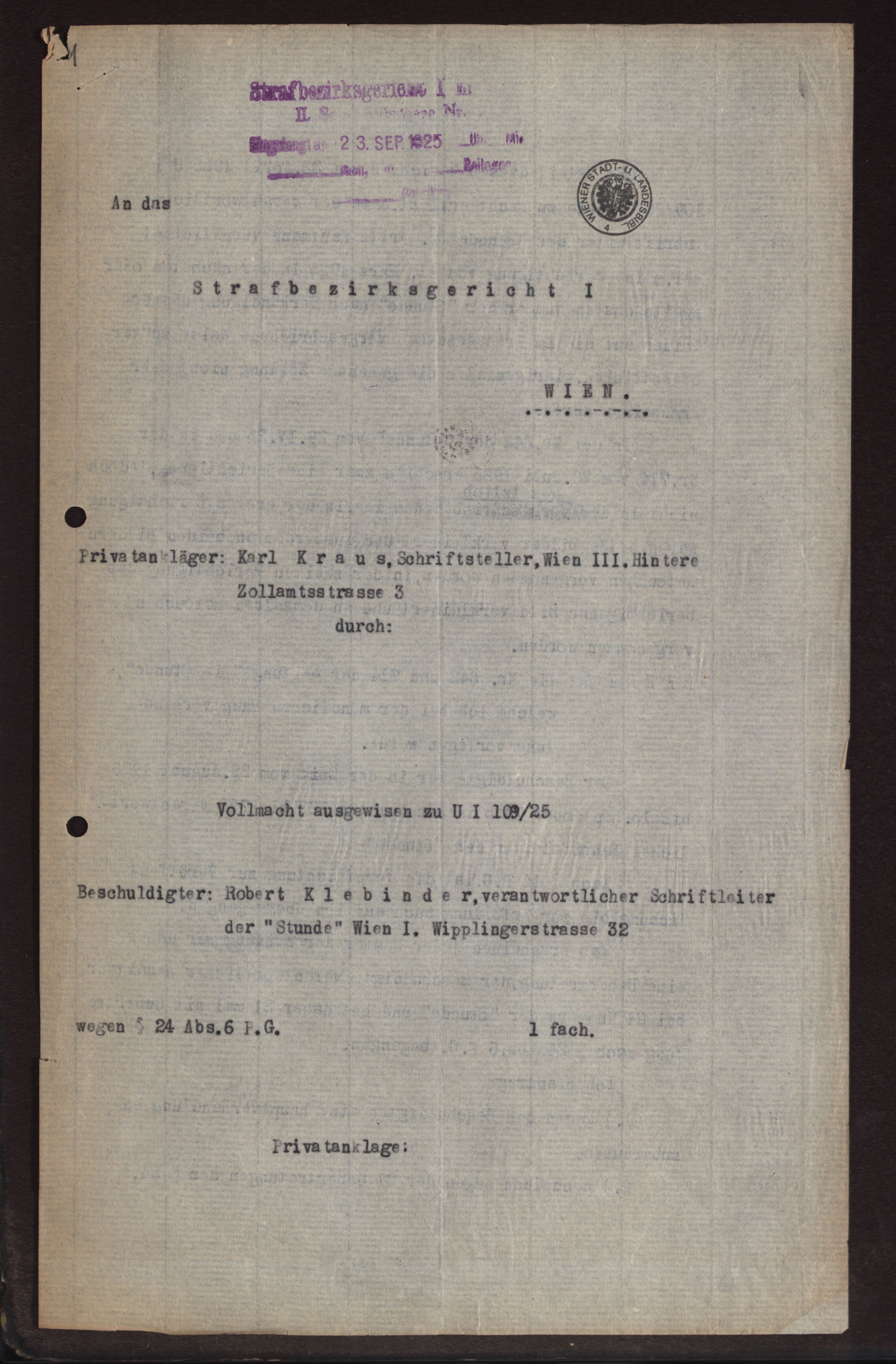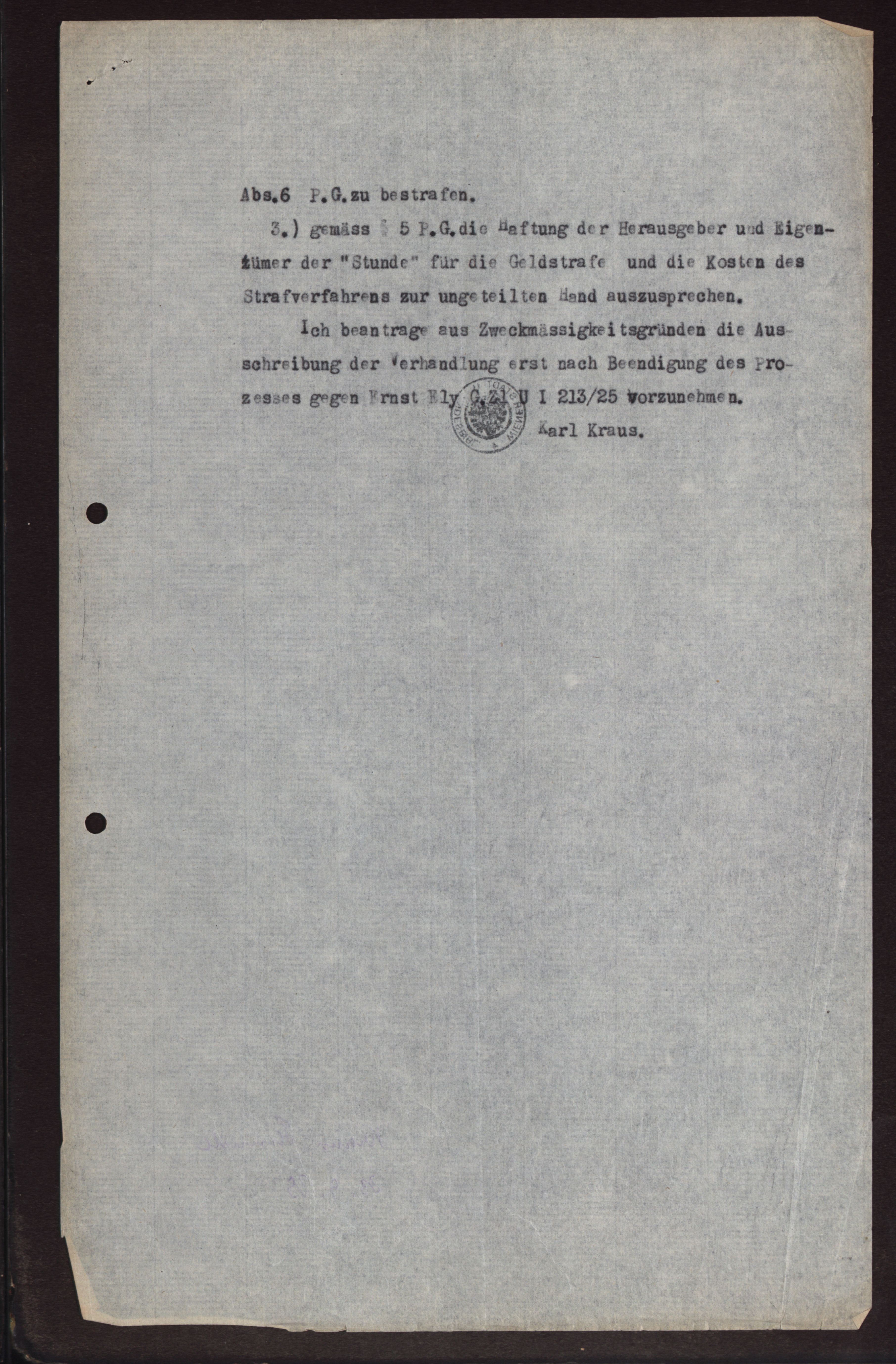 Signatur: ZPH 1545 - 18.1.Anzahl der Seiten: 4Hauptnummer: 18Nebennummer: 1Datum: 23.09.1925 >> Karl Kraus ca. Die Stunde