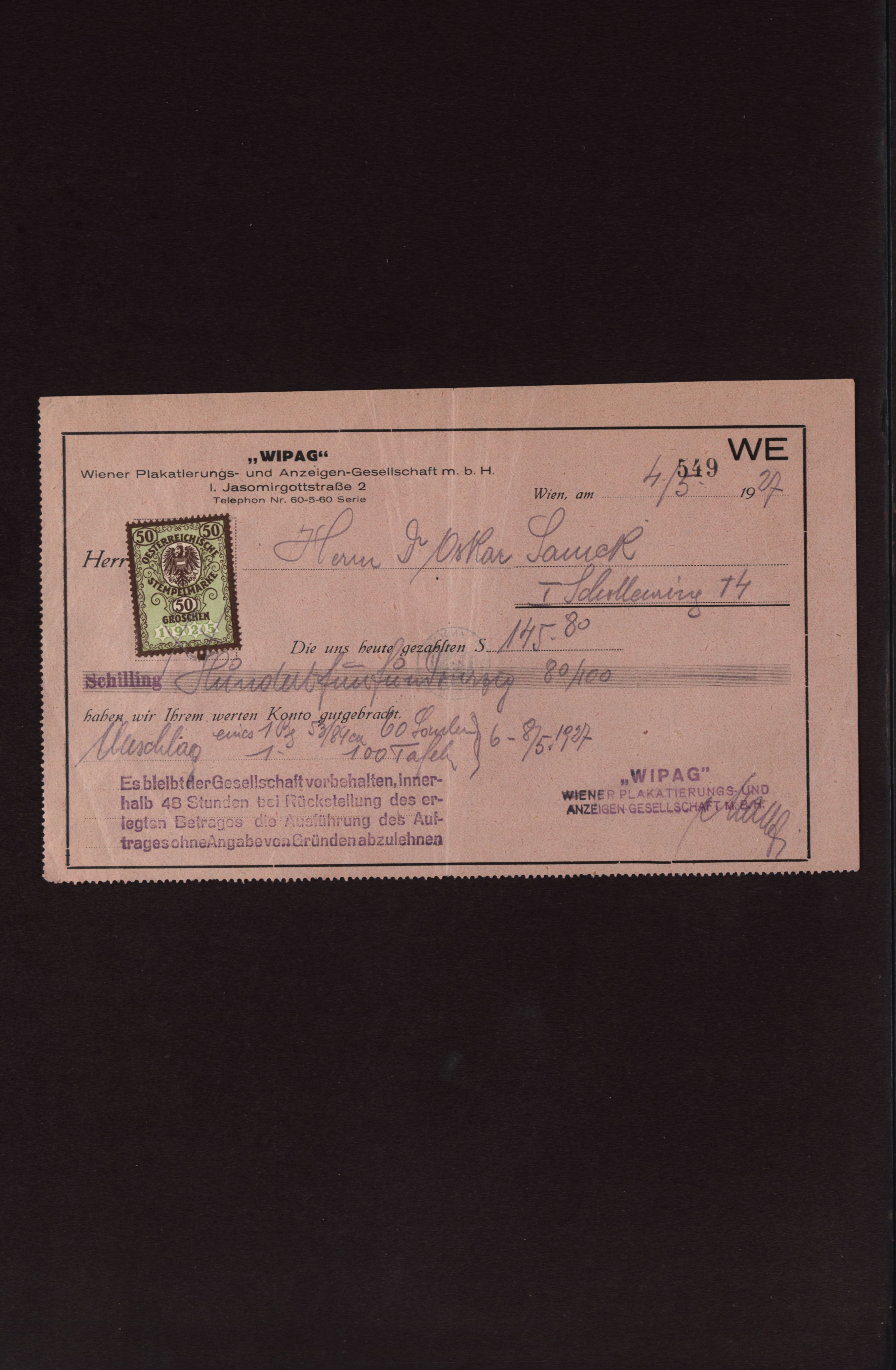 Signatur: ZPH 1545 - 85.2.Anzahl der Seiten: 1Hauptnummer: 85Nebennummer: 2Datum: 04.05.1927 >> Karl Kraus ca. Wiener Plakatierungs- und Anzeigengesellschaft (WIPAG)