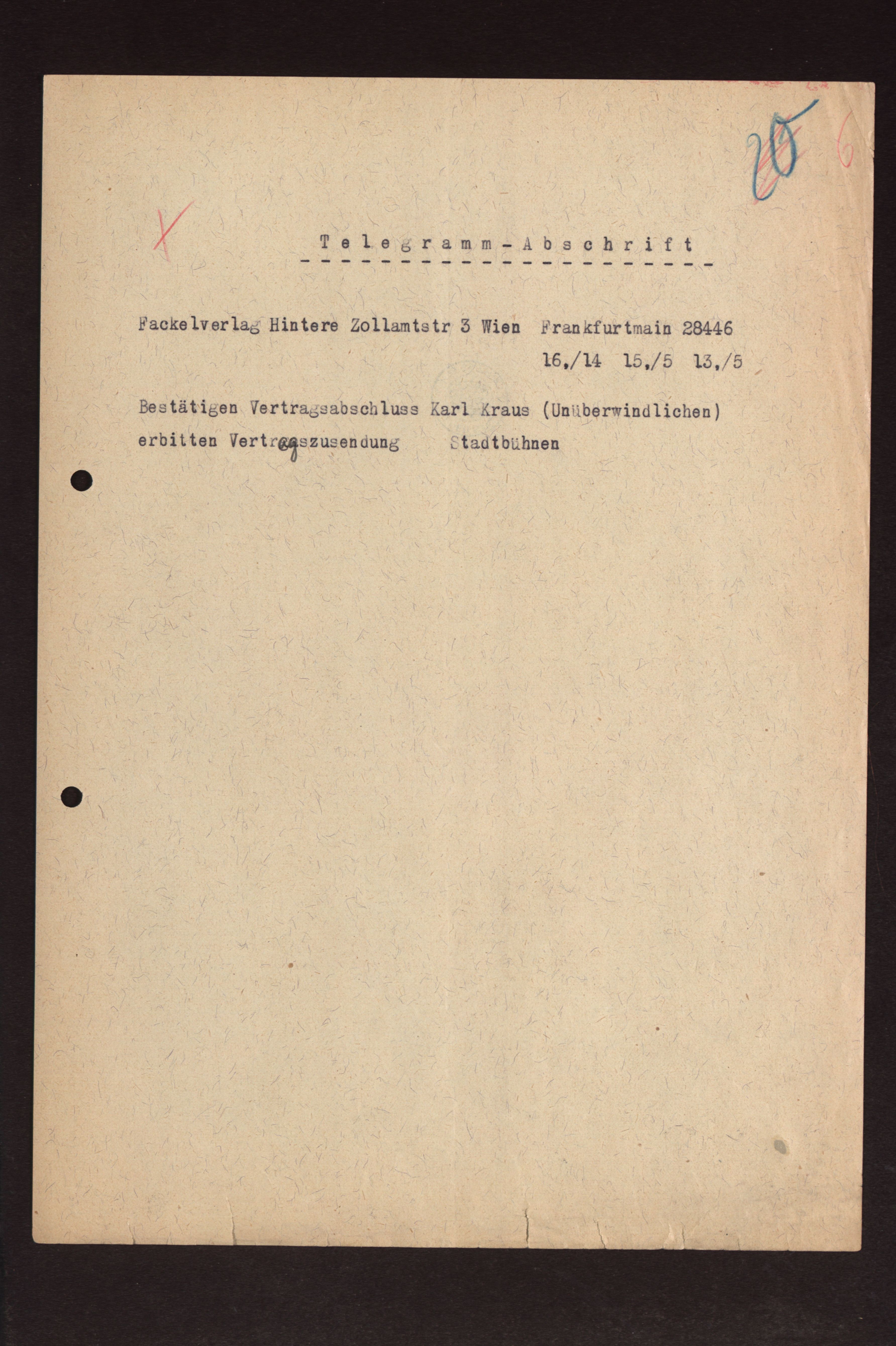 Signatur: ZPH 1545 - 125.3.Anzahl der Seiten: 3Hauptnummer: 125Nebennummer: 3Datum: 15.05.1929 >> Karl Kraus ca. Frankfurter Städtisches Schauspielhaus