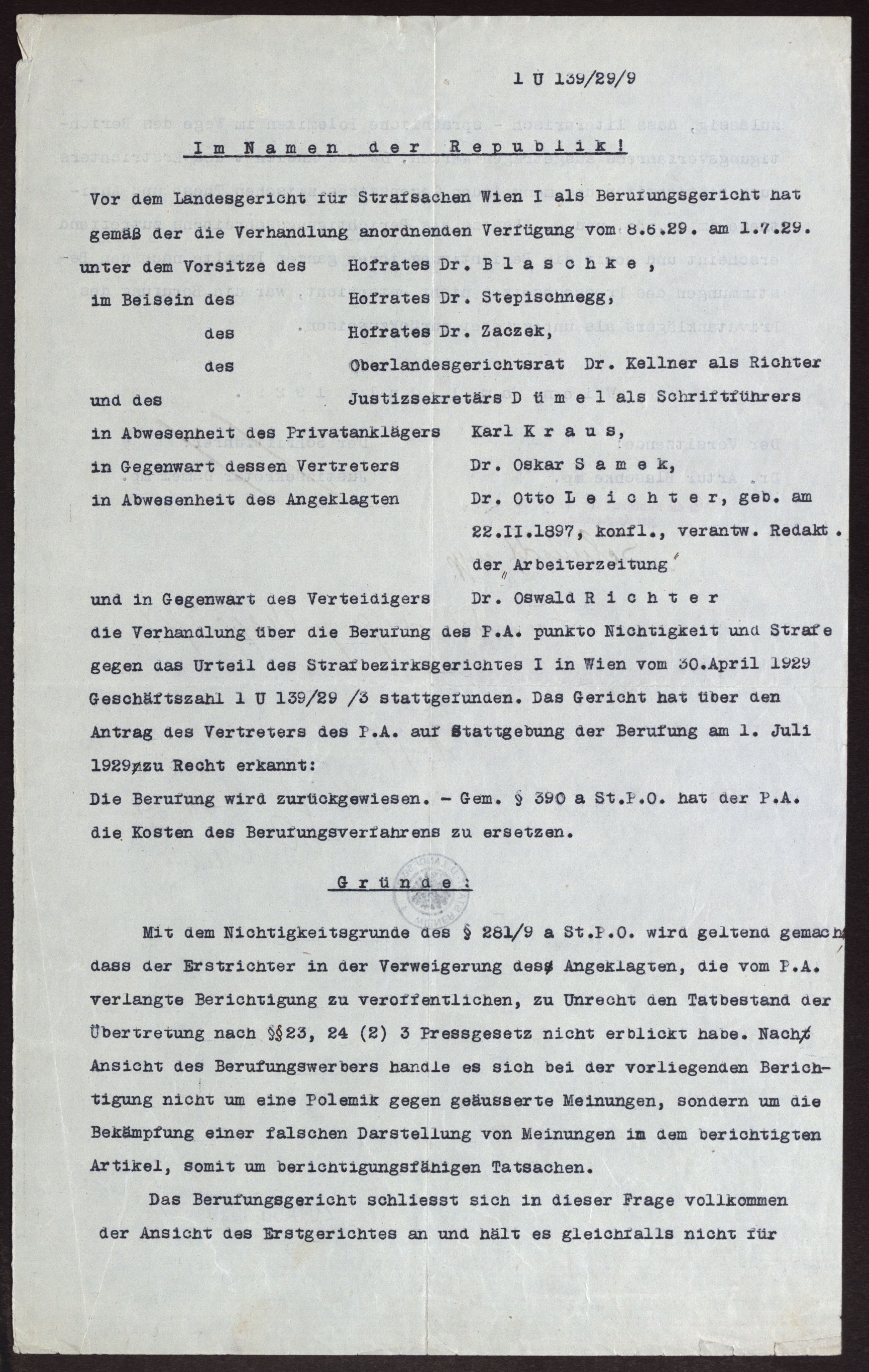 Signatur: ZPH 1545 - 121.10.Anzahl der Seiten: 1Hauptnummer: 121Nebennummer: 10Datum: 01.07.1929 >> Karl Kraus ca. Arbeiter-Zeitung
