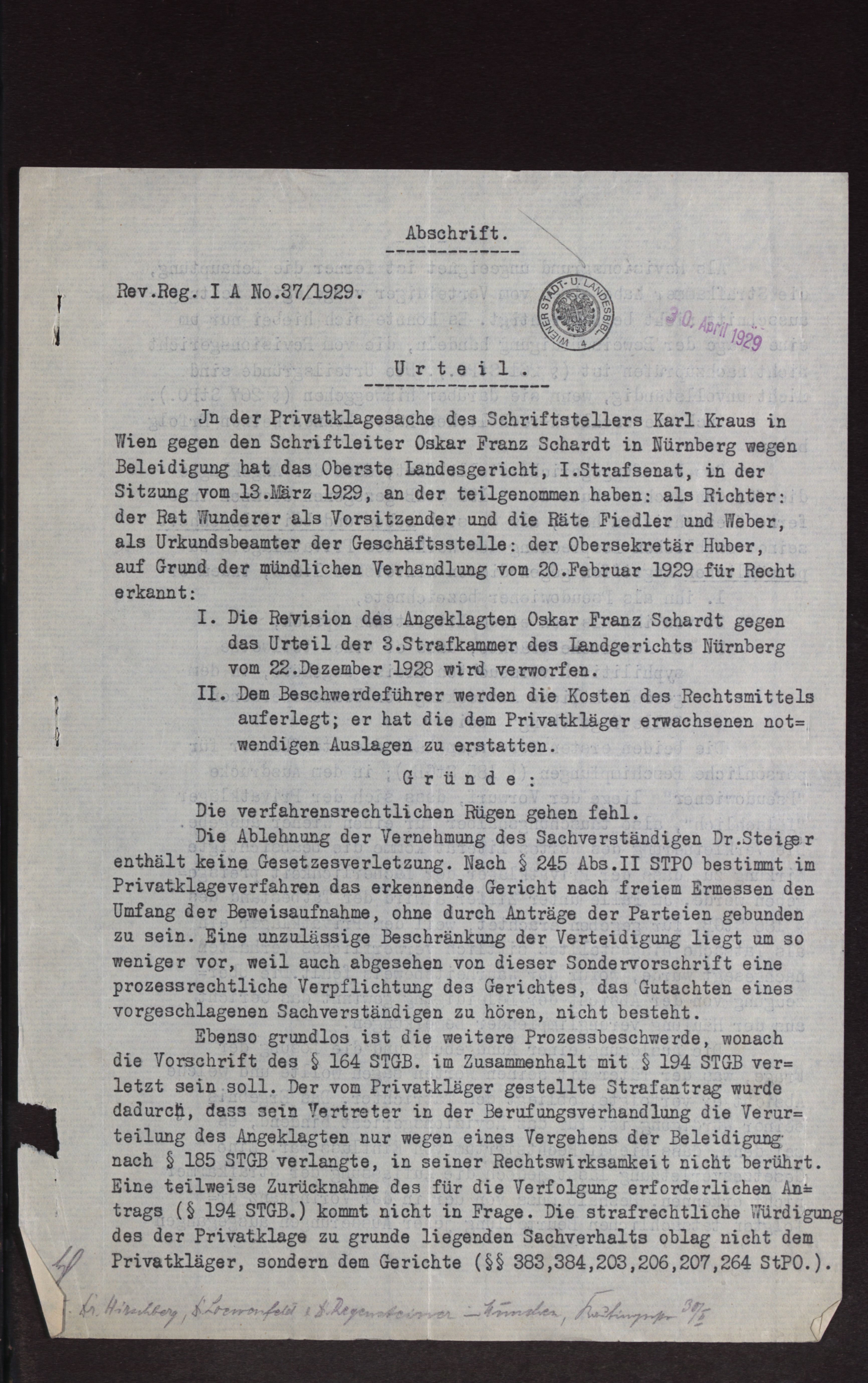 Signatur: ZPH 1545 - 103.50.Anzahl der Seiten: 6Hauptnummer: 103Nebennummer: 50Datum: 28.03.1929 >> Karl Kraus ca. Fränkischer Kurier