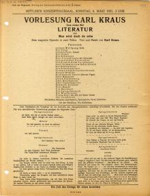 Am Morgen weckte mich ein Brief von Karl Kraus, in dem er mir mitteilt, daß er meine von einem Freunde (ohne mein Wissen) eingesandten Gedichte in der Fackel zu drucken beabsichtigt.