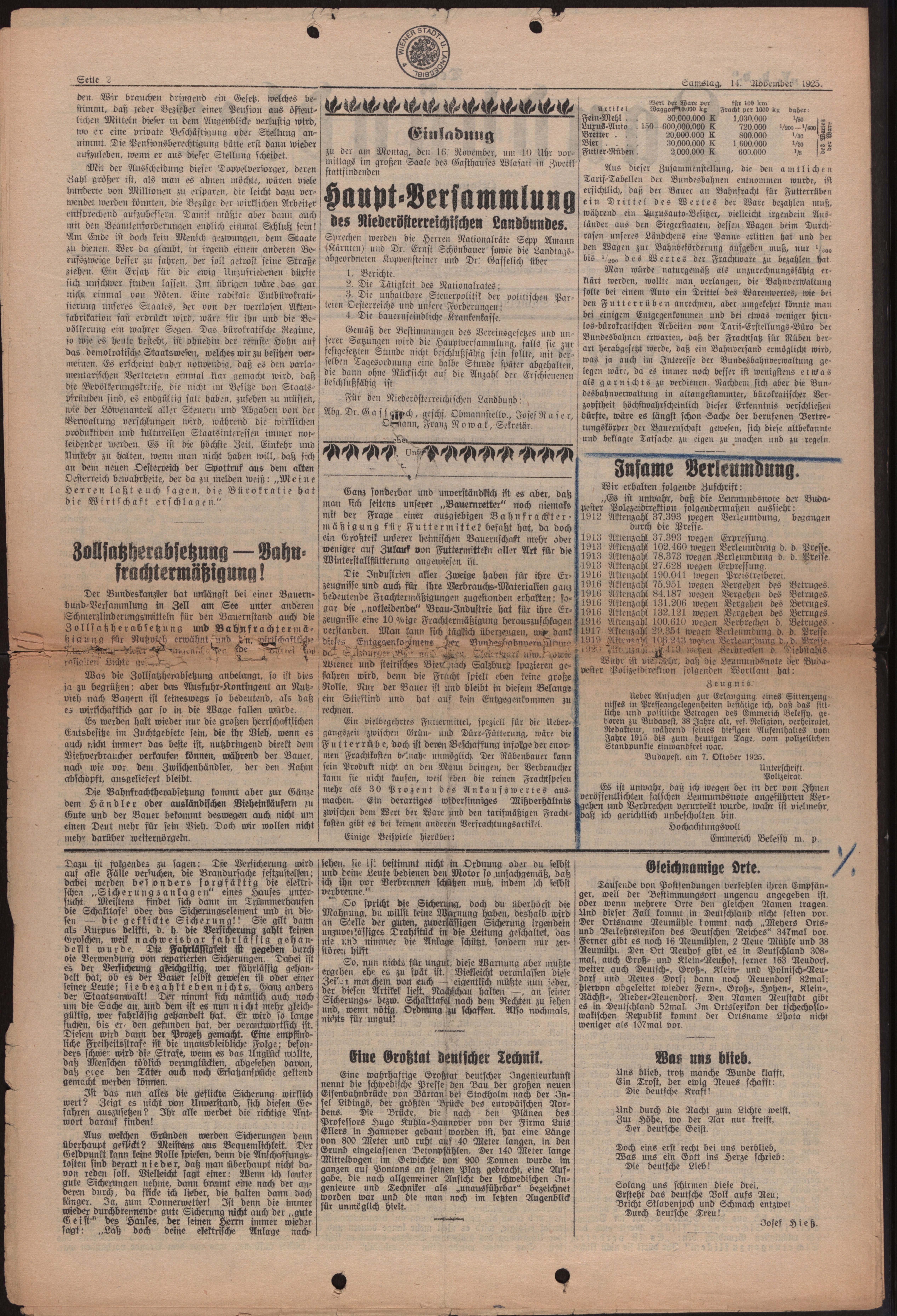Signatur: ZPH 1545 - 49.2.Hauptnummer: 49Nebennummer: 2Datum: 14.11.1925 >> Reservat-Akten (Fragmente und Ähnliches)
