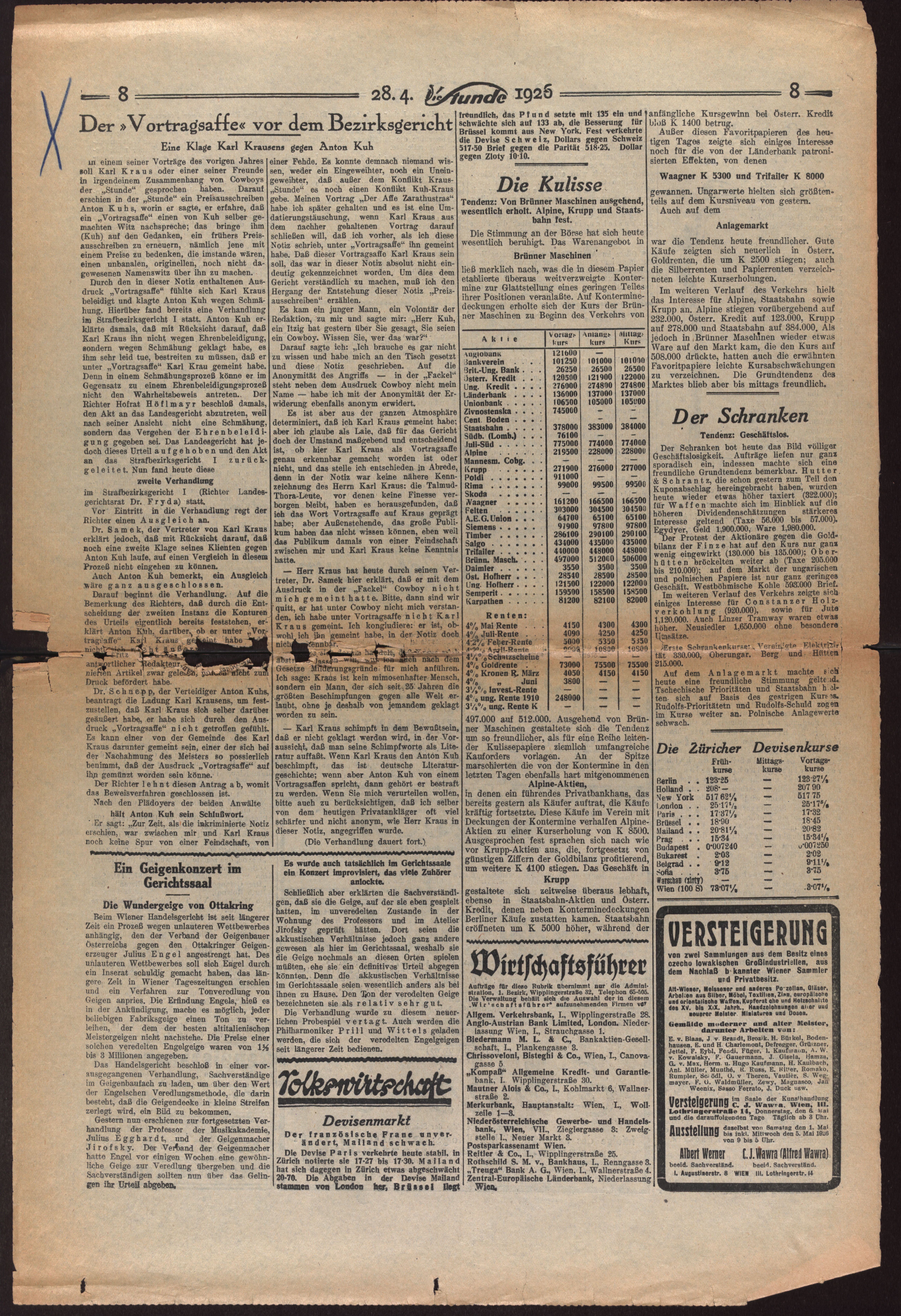 Zeitungsartikel aus: Die Stunde, Nr. 941