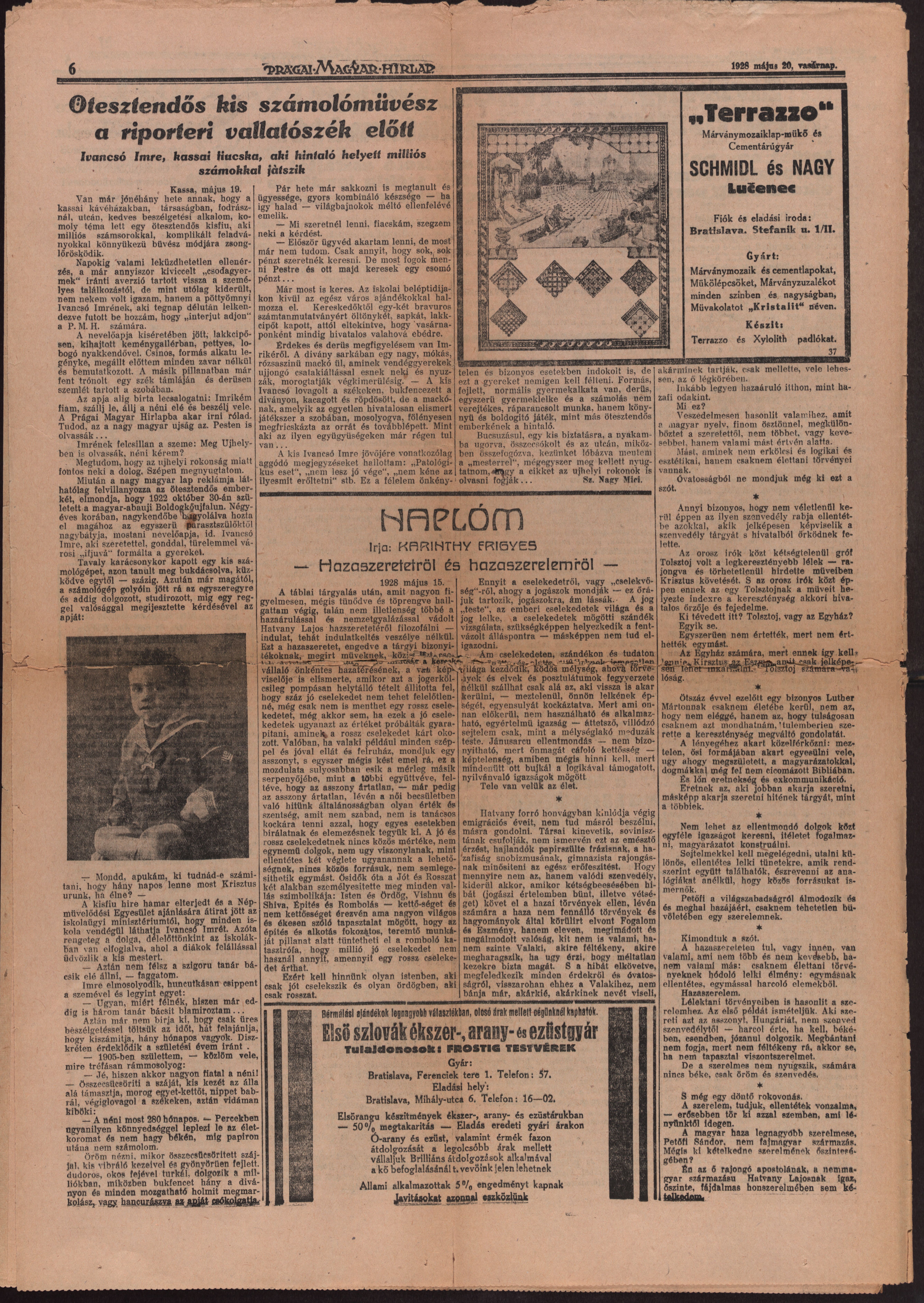 Signatur: ZPH 1545 - 105.2.Hauptnummer: 105Nebennummer: 2Datum: 20.05.1928 >> Karl Kraus ca. Prágai Magyar Hirlap