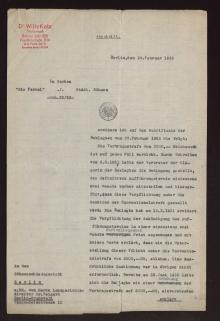 Schriftsatz [Abweisung der Klage] in Sachen Fackel Verlag ./. Städtische Bühnen A.G. Frankfurt a./M. (Justitiar […] Heun an das Bühnen-Schieds-Gericht Berlin, Landgerichtsdirektor […] Weigert) Signatur: ZPH 1545 - 125.89.Anzahl der Seiten: 3>> Karl Kraus ca. Frankfurter Städtisches Schauspielhaus
