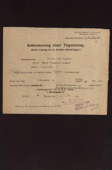 Anberaumung einer Tagsatzung (G. Z. 7 Cg 322/32, Oberlandesgerichtsrat Rudolf Chamrath) Signatur: ZPH 1545 - 125.117.Anzahl der Seiten: 1>> Karl Kraus ca. Frankfurter Städtisches Schauspielhaus