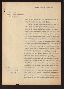 Schriftsatz in Sachen Die Fackel ./. Die Volksbühne (RA Otto Joseph an das Kammergericht Berlin, G. Z. 27.U.1609.31) Signatur: ZPH 1545 - 136.28.Anzahl der Seiten: 5>> Karl Kraus ca. Volksbühne Berlin