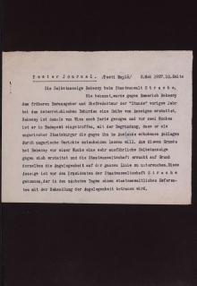Zeitungsartikel aus: Pesti Napló (Pester Journal), 03.05.1927; Beil.: Übersetzung des darin enthaltenen Artikels „Die Selbstanzeige Békessys beim Staatsanwalt Strache“ aus dem Ungarischen Signatur: ZPH 1545 - 48.7.Anzahl der Seiten: 1>> Korrespondenz mit Leo Singer (betreffend Békessys Versuche, in Budapest eine neue Zeitung zu gründen)