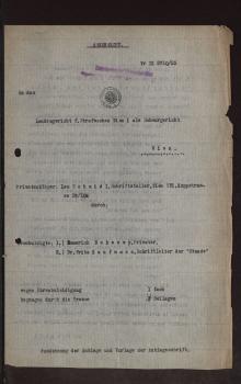 Antrag auf Einleitung der Voruntersuchung (Landesgericht für Strafsachen I Wien) Signatur: ZPH 1545 - 57.39.Anzahl der Seiten: 1>> Prozess Leo Schmidl ca. Emmerich Békessy