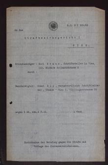 Privatanklage von Karl Kraus gegen Die Stunde (verantw. Red. Ernst Ely) wegen § 24 Pr. G. Signatur: ZPH 1545 - 17.1.Anzahl der Seiten: 2>> Karl Kraus ca. Die Stunde